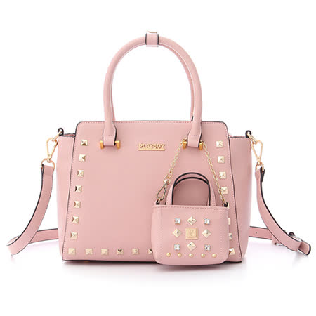 1111網購節活動-PLAYBOY- Rivet bunny 叛逆小兔系列 2WAY手提包-玫瑰石英粉 高雄漢神巨蛋週年慶